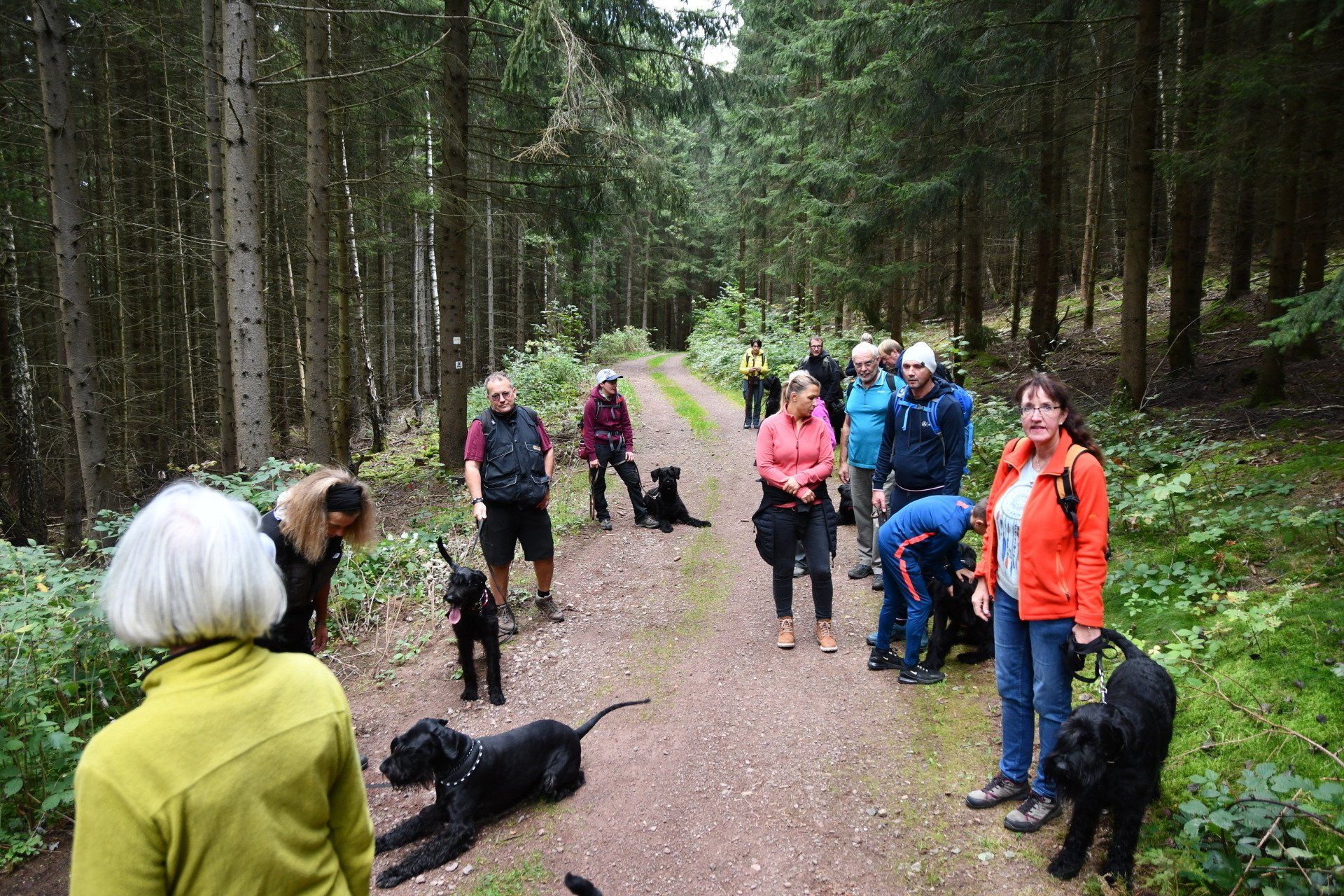 v.li.: Quitu/Heinz, Inja/Dagmar & Arnold, Jonna/Jutta, Kamina/Sonja, Willy/Sarah, Higgins/Zuchtmutti Viola, Negra/Ramona, Christiane, Puma/Manfred & Renate, Bruno/Jenny, Wilma & Hatsch/Marita, Apollo/ Enrico, Benett & Steffi, Xanthos/Jan & Maren, Nona & Avanti/ Carmen, Lio Lohmann/Betty & Gerd, Thora/Bernd, Lupo/Monika & Manfred und Gastgeberin Katherina mit Yashodhan Yukon