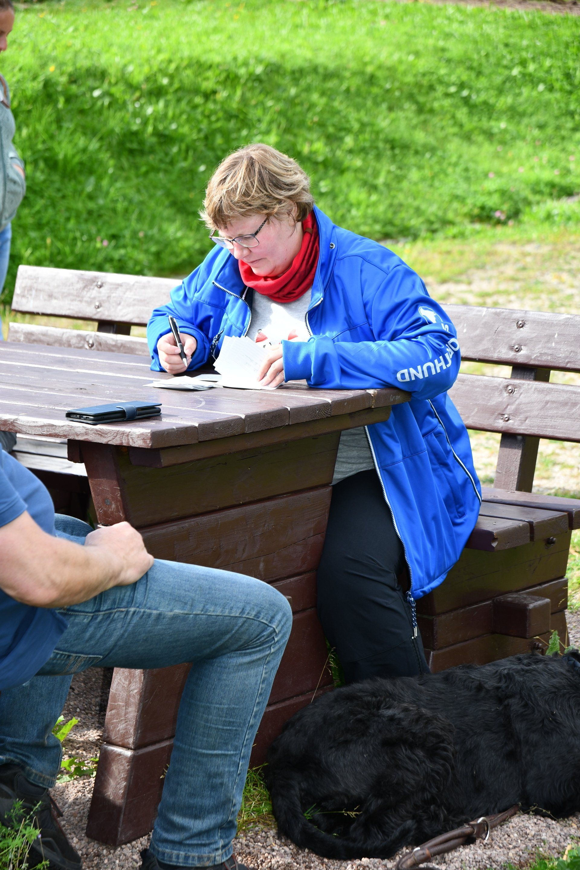 Gemütliches Mittagsessen mit vorbildlichen Hunden