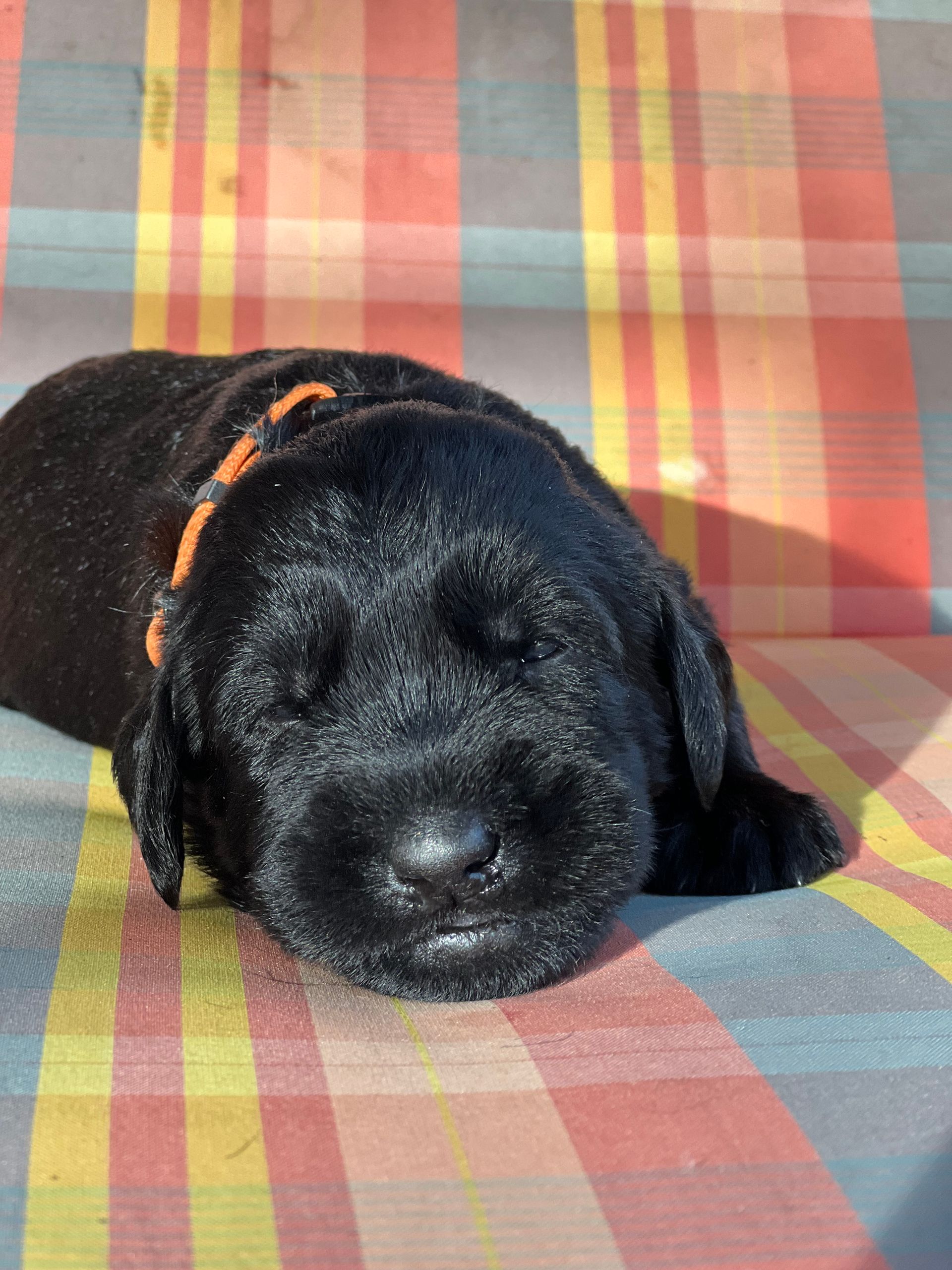 Somit hat jetzt auch die ruhige Zeit, ein Ende ;-) Es ist die 100 Pfützen am Tag Phase eingeläutet und der Wischeimer steht immer bereit. Sie trinken sehr gut und wir sind weiterhin mit ihrer Entwicklung sehr zufrieden. Eleven ist so entspannt, dass jetzt auch die anderen Rudelmitglieder zum Gucken kommen dürfen und sie selber kommt schon wieder immer öfters zu uns, um sich ordentlich beschmusen zu lassen.
