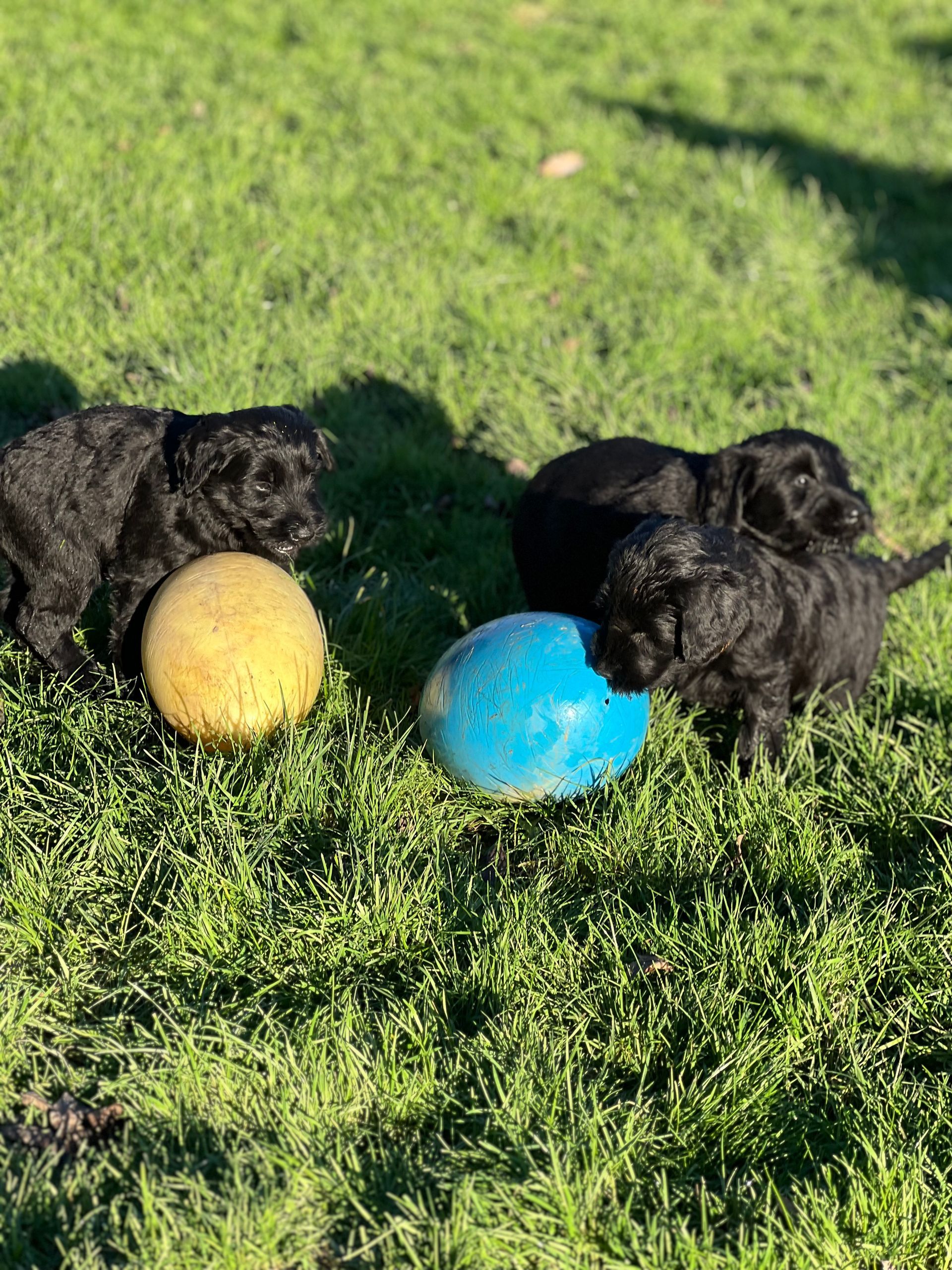 Die Welpen haben nun auch den großen Auslauf kennen gelernt, ließen sich in einem Spiel-LKW ziehen, sind über große Maulwurfhaufen gestolpert, haben mit Don geflirtet und mit Eleven gespielt.